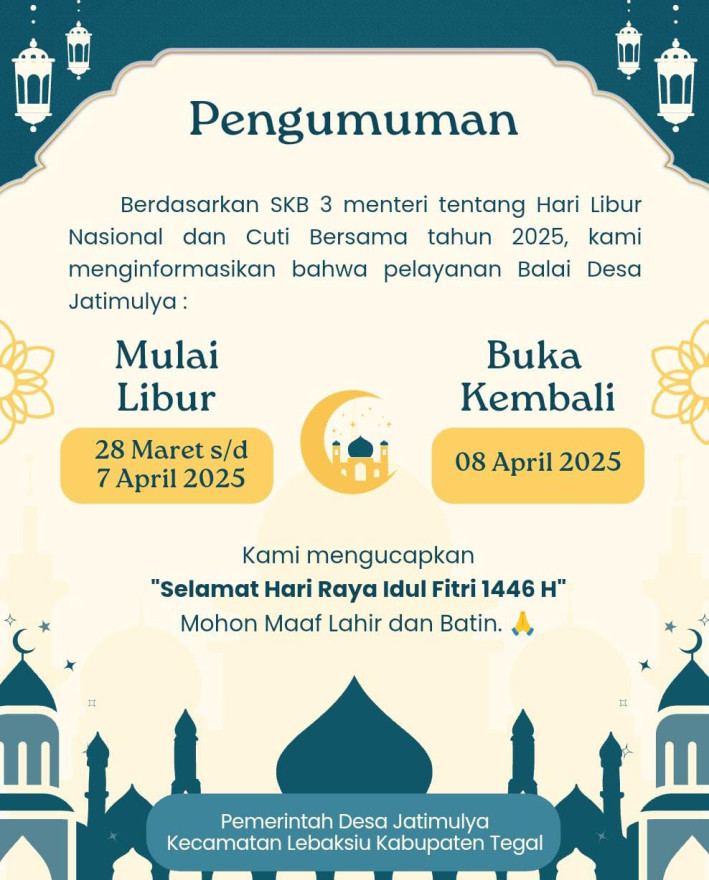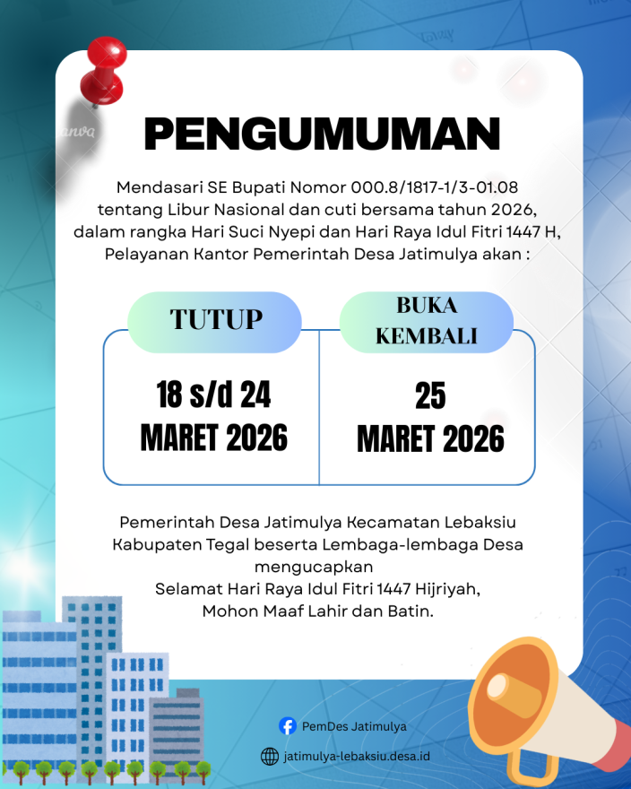 Alamat : Desa Jatimulya RT 005 RW 001 Kecamatan Lebaksiu Kabupaten Tegal